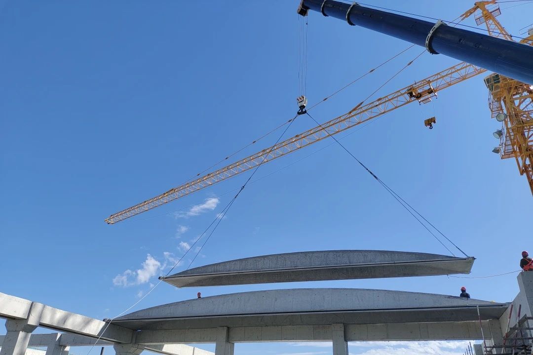 9月25日,肇東市城市供水工程項(xiàng)目?jī)羲g預(yù)應(yīng)力屋面拱板起重吊裝完成。...