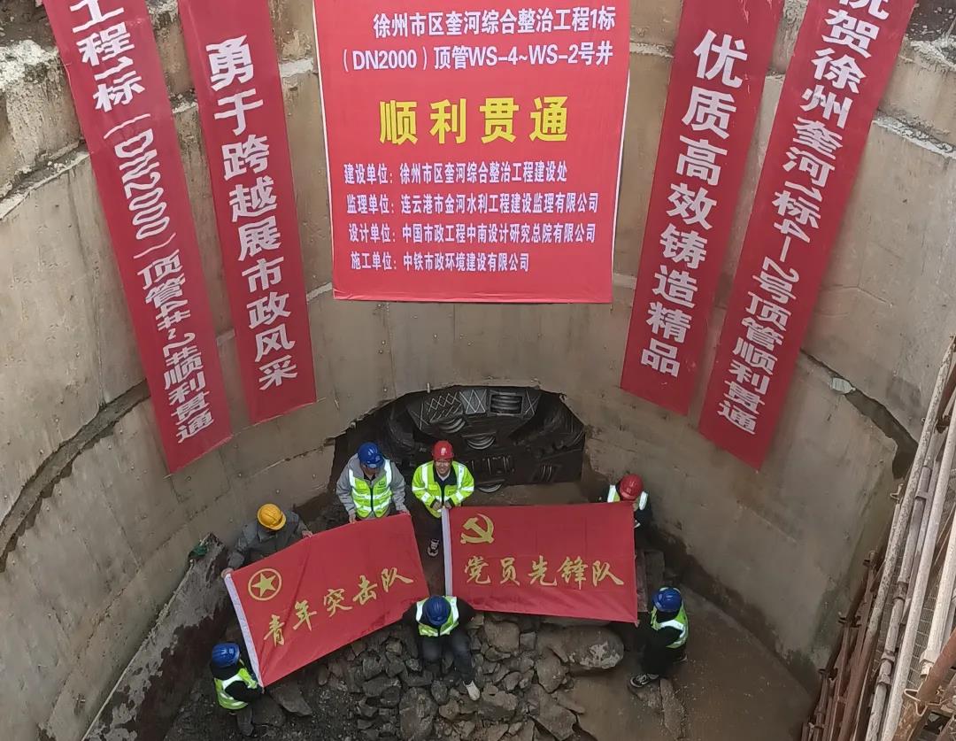 12月14日上午,徐州市區(qū)奎河綜合治理1標(biāo)項目WS-4#~WS-2#段頂管順利貫通。...