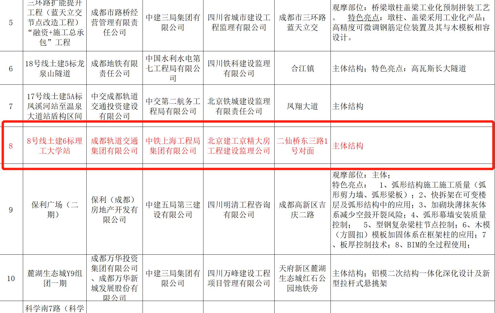 近日,由公司承建的成都軌道交通8號線一期工程6標理工大學站榮獲2019年度成都市“優(yōu)質示范工程”,這是繼理工大學站榮獲成都市“安標工地”后的又一殊榮。...