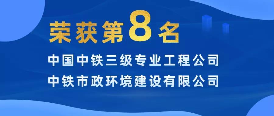 近日,中國(guó)中鐵發(fā)布了2020年度 “中國(guó)中鐵三級(jí)專(zhuān)業(yè)工程公司20強(qiáng)”,中鐵市政環(huán)境建設(shè)有限公司名列三級(jí)專(zhuān)業(yè)工程公司20強(qiáng)第八名,連續(xù)三年強(qiáng)勢(shì)入選!...