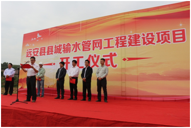 9月29日上午,公司中標的宜昌市遠安縣縣城輸水管網(wǎng)工程在管線的起點舉行了開工儀式。遠安縣縣委副書記、縣長蘇海濤,縣委常委、副書記張俊,縣委常委、常務副縣長肖鵬飛,縣政協(xié)副主席、工程建設副指揮長梅昌許,公司總經(jīng)理鄧永馳,以及遠安縣縣直相關單位,工程監(jiān)理、工程設計等...