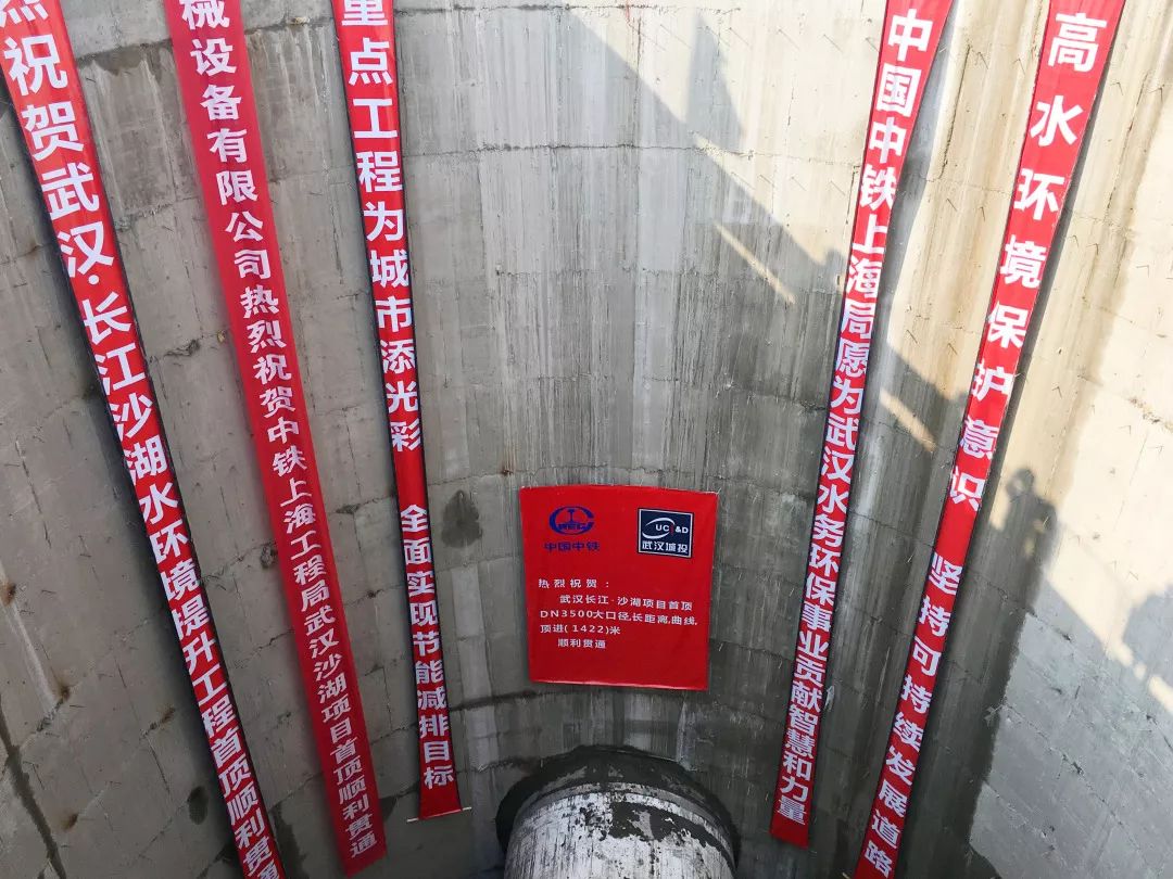 12月13日,公司承建的湖北省首例大口徑超長距離曲線水下頂管——長江、沙湖水環(huán)境提升工程沙湖公園W2-W3頂段順利貫通。長江、沙湖水環(huán)境提升工程中的管線工程南起于新生路泵站,北止于二郎廟污水處理廠,全長約5.78公里,需先后橫穿規(guī)劃武九綜合管廊、友誼大道隧道及現(xiàn)狀沙湖水面等多處節(jié)點(diǎn)。其中,沙湖公園W2-W3頂段長度1422.18米,順坡0.22%,為直線+曲線+直線頂管,其中曲線段長141.27米,曲線半徑為600米,施工難度大、技術(shù)含量高。頂管采用DN3500F型鋼承口式鋼筋混凝土管,管材外徑4140毫米。施工過程中,項(xiàng)目部認(rèn)真優(yōu)化施工方案,精心組織施工生產(chǎn),克服了地質(zhì)條件差、施工難度大、安全風(fēng)險高等不利條件,頂管管道順利穿越沙湖。