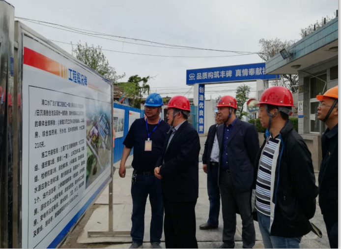 4月15日,南京水務(wù)集團(tuán)董事長(zhǎng)單國(guó)平一行到公司承建的南京浦口水廠改擴(kuò)建工程項(xiàng)目部檢查指導(dǎo)工作。公司黨委書(shū)記尹朝援陪同。