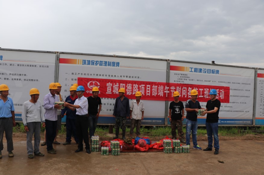 又訊,6月6日上午,宣城陽德路項目部開展“情系農(nóng)民工、端午節(jié)慰問活動”,項目部領導來到施工現(xiàn)場為奮戰(zhàn)在一線的100多名農(nóng)民工送去了粽子、豬肉、啤酒等慰問品,送去了項目的溫馨祝福,讓堅守在施工一線農(nóng)民工兄弟真正感受到項目對他們的關愛之情和濃厚的節(jié)日氣氛。(唐順林)