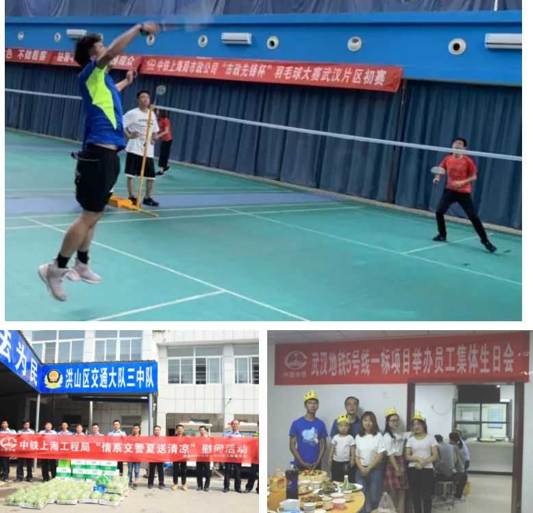 四是貫徹落實“職工小家”建設制度。項目黨支部以“家文化”建設為載體,認真執(zhí)行職工小家有形化建設,修建和完善了駐地設施。同時,深入開展安全質量教育培訓、群安員、青安崗等活動,形成了安全生產人人抓的管理氛圍。項目黨支部始終把關愛員工作為凝聚員工向心力的載體,在節(jié)假日組織文體活動,開展“金秋助學”,每月組織開展職工集體生日活動,截至目前組織開展了9次員工集體生日活動;組織開展夏送清涼、冬送溫暖、一年四季送關懷活動,增強了職工的歸屬感、榮譽感,全體員工將愛“家”的意識轉化為建“家”的熱情,有力推動了項目部各項工作扎實有效深入開展。