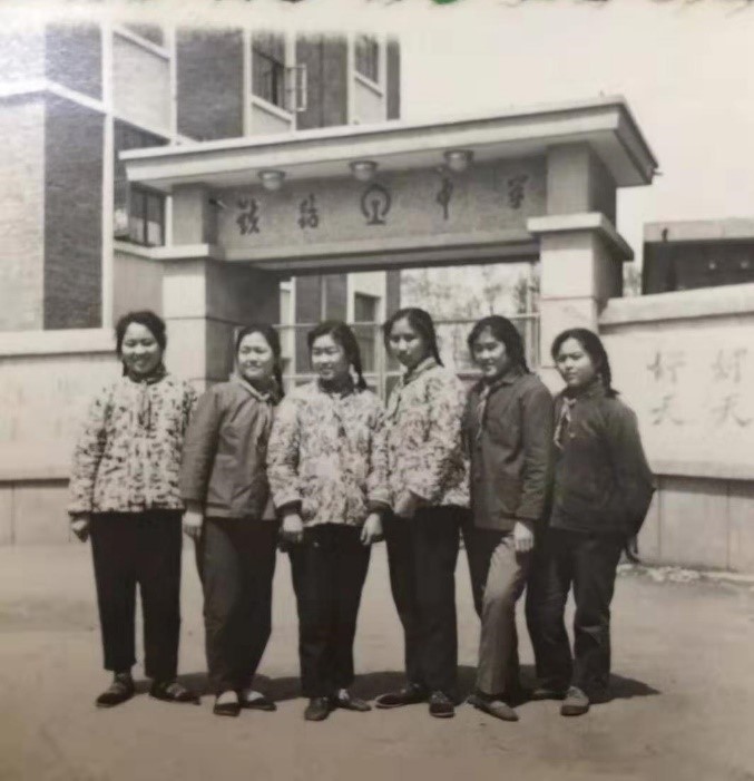 同學(xué)們?cè)阼F路中學(xué)校門口合影