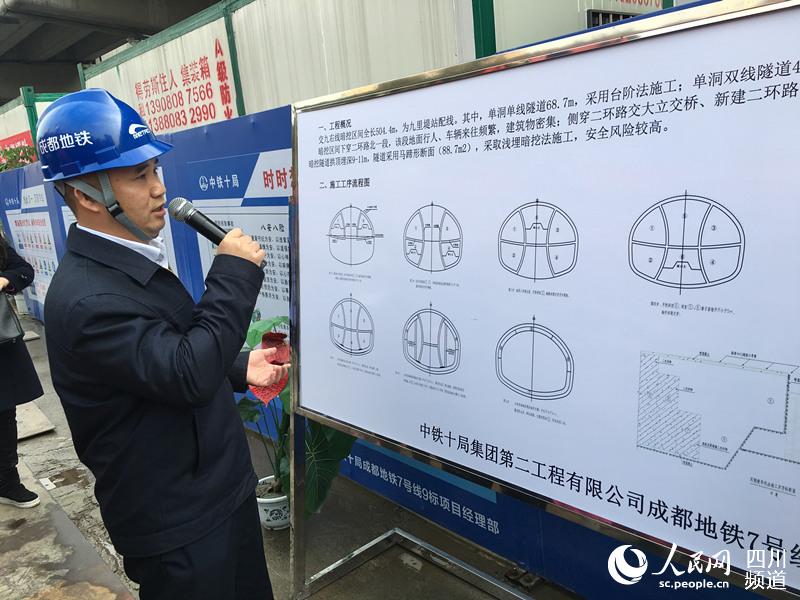 在成都二環(huán)路北一段高架橋的下方,地鐵七號(hào)線西南交大站—九里堤站的隧道正在施工,橋基從隧道旁“擦肩而過(guò)”,最近的地方僅有2.8米。為了保證路面交通暢通和高架橋的穩(wěn)定,地鐵施工放棄盾構(gòu)機(jī),首次采用雙側(cè)壁導(dǎo)坑法分六步,人工開挖。
