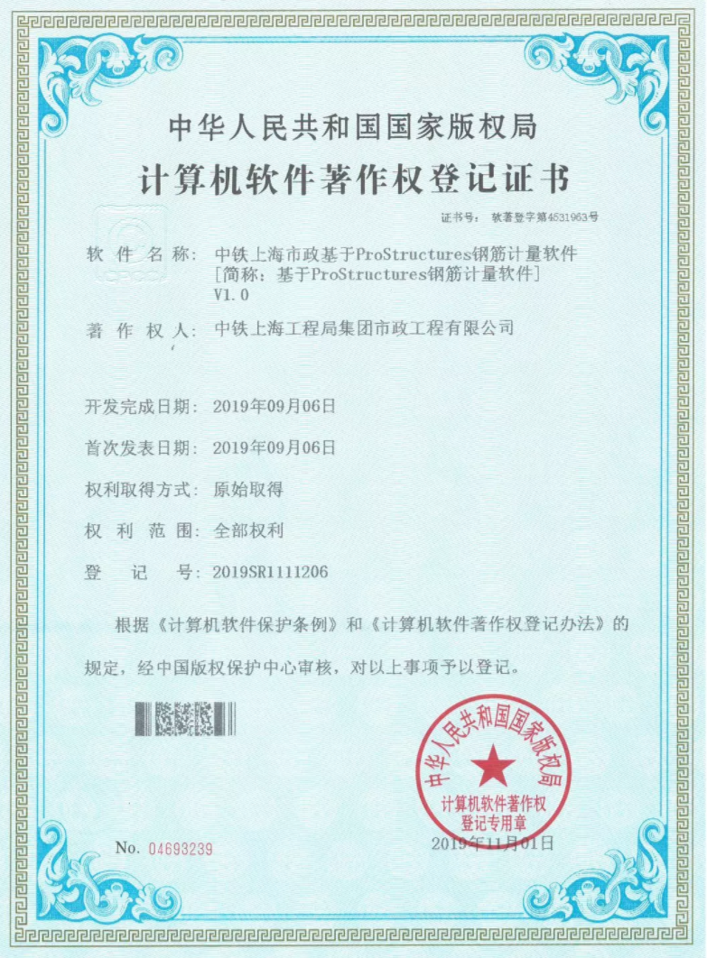 近日,從國(guó)家版權(quán)局傳來(lái)喜訊,公司技術(shù)創(chuàng)新工作又獲新突破!公司自主研發(fā)的“中鐵上海市政測(cè)量放樣記錄軟件”“中鐵上海市政基于ProStructures鋼筋計(jì)量軟件”通過(guò)中國(guó)版權(quán)保護(hù)中心審核,獲得國(guó)家版權(quán)局計(jì)算機(jī)軟件著作權(quán)授權(quán),并取得了著作權(quán)登記證書(shū)。計(jì)算機(jī)軟件著作權(quán)是企業(yè)科技研發(fā)工作的一項(xiàng)重要指標(biāo),此次一次性獲批兩項(xiàng)國(guó)家版權(quán)局計(jì)算機(jī)軟件著作權(quán),是公司高度重視軟件及信息化技術(shù)開(kāi)發(fā)的成果,表明公司自主研發(fā)取得的獨(dú)立知識(shí)產(chǎn)權(quán)得到了權(quán)威認(rèn)可和肯定。
