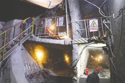而且該段隧道為存車(chē)折返線,隧道十分寬大,無(wú)法采用常規(guī)的盾構(gòu)機(jī)掘進(jìn),因此這504米長(zhǎng)的距離只能人工掘進(jìn),據(jù)該負(fù)責(zé)人介紹,這段隧道都在地下9至11米,隧道的樣式如同馬蹄形,面積大約有88.7平方米,純手工作業(yè),每天的掘進(jìn)量大概只有60多厘米。