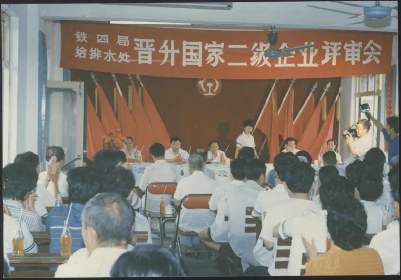 企業(yè)升級是國家“七五”期間的中心任務(wù),圍繞著“抓管理、上等級、全面提高素質(zhì)”的工作要求,全處廣泛宣傳發(fā)動。從加強(qiáng)基礎(chǔ)工作入手,成立領(lǐng)導(dǎo)小組和企管辦,圍繞安全、質(zhì)量、效益等重點(diǎn),廣泛開展標(biāo)準(zhǔn)化、計(jì)量、能耗、檔案、普法、全面質(zhì)量管理、班組建設(shè)等專項(xiàng)達(dá)標(biāo)升級。機(jī)關(guān)各部門、各單位對照“方針目標(biāo)任務(wù)展開表(類似于現(xiàn)在管理矩陣、責(zé)任清單)開展資料“補(bǔ)強(qiáng)”工作。1990年,給排水工程處通過鐵道部評審組考核驗(yàn)收,成為全局第一家晉升國家二級企業(yè)的單位,全處職工每人都晉升了一級標(biāo)準(zhǔn)工資,更重要的是剛剛成為獨(dú)立法人不久的給排水處整體管理理念和綜合素質(zhì)有了顯著提升。處相繼榮獲全國五一勞動獎狀、全國先進(jìn)施工企業(yè)等榮譽(yù),成為名噪一時(shí)的鐵四局“四小龍”之一,無論是企業(yè)管理、經(jīng)濟(jì)效益還是員工風(fēng)貌,都成為全局標(biāo)桿。