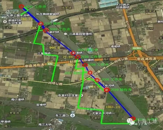 現(xiàn)場負(fù)責(zé)人告訴工地君黃浦江上游水源地連通管工程C5標(biāo)自松江泵站至金山分水點段的JC-01井到JC-10井,包括10座頂管井及9個頂進區(qū)段,標(biāo)段線路長度4237.26m,總造價2.05億元。