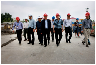 5月27日上午,上海市城市建設(shè)投資開發(fā)(集團(tuán))總公司副總裁王志強(qiáng),上海市城市建設(shè)投資開發(fā)(集團(tuán))總公司副總裁、上海城投水務(wù)(集團(tuán))有限公司總經(jīng)理樊仁毅,上海城投水務(wù)(集團(tuán))有限公司副總經(jīng)理麥穗海、上海市城市建設(shè)投資開發(fā)(集團(tuán))總公司重大工程建設(shè)辦公室主任吳冠軍、上海市城市排水有限公司總經(jīng)理周驊等一行10人蒞臨公司新宛平排水系統(tǒng)工程XWP1.1標(biāo)項(xiàng)目部進(jìn)行現(xiàn)場(chǎng)調(diào)研,公司執(zhí)行董事、黨委書記陳建鳴,副總經(jīng)理胡斌陪同調(diào)研。