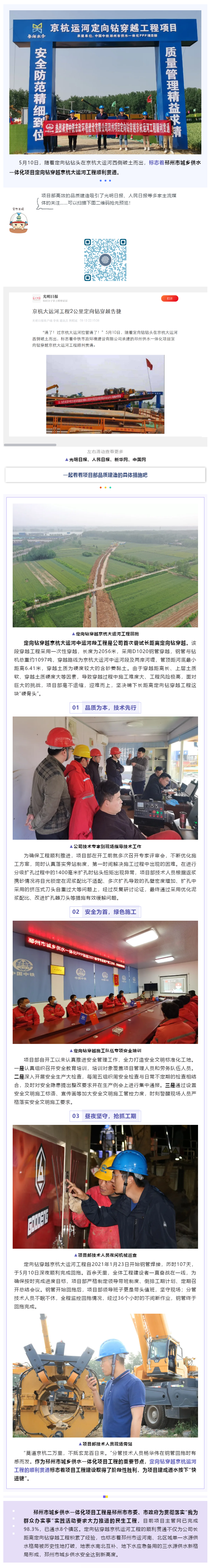 邳州項目定向鉆穿越京杭大運(yùn)河工程順利貫通