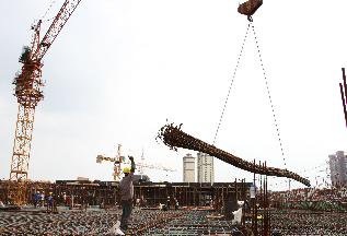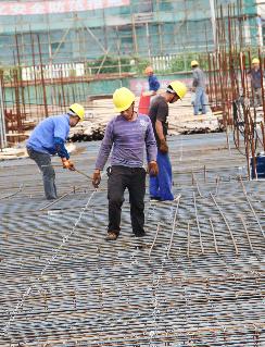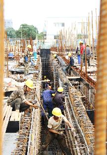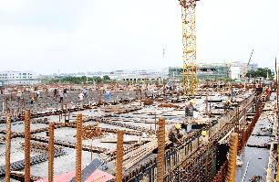 2015年9月25日拍攝,在昆山北區(qū)污水廠三期擴(kuò)建工程施工現(xiàn)場(chǎng)工人們正在作業(yè)。 |