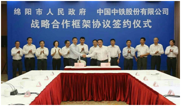 8月31日,股份公司與綿陽市人民政府舉行戰(zhàn)略合作框架協(xié)議簽約儀式。中國中鐵股份有限公司副總裁劉輝,綿陽市委副書記、市長劉超見證簽約并致辭。