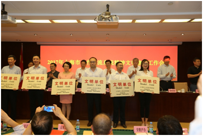 6月6日,2017年上海市合作交流系統(tǒng)精神文明建設大會在上海市市政大廈召開,會上,合作交流黨委向榮獲十八屆上海市文明單位榮譽稱號的單位頒發(fā)了獎牌、獎狀。作為獲獎單位,公司執(zhí)行董事、黨委書記尹朝援出席會議并代表公司接受了合作交流黨委的表彰。自公司重組、東遷上海以來,公司黨委主動與上海地方政府部門取得工作對接,積極融入上海市精神文明創(chuàng)建體系,經(jīng)過不懈努力,連續(xù)兩屆榮獲上海市合作交流系統(tǒng)文明單位榮譽稱號。在此基礎上,公司黨委繼續(xù)狠抓精神文明建設,全面貫徹落實黨的十八大和黨的十八屆三中、四中、五中、六中全會精神,深入學習貫徹習近平總書記系列重要講話精神,以培育和踐行社會主義核心價值觀為根本,堅持圍繞中心、服務大局、立足實際、注重實效,深入開展群眾性精神文明創(chuàng)建活動,推動物質(zhì)文明和精神文明協(xié)調(diào)發(fā)展。在第十八屆(2015-2016年度)上海市文明單位創(chuàng)建期間,構(gòu)筑了完善的創(chuàng)建體系,形成了黨政工團齊抓共管的創(chuàng)建格局,努力打造建筑精品,積極履行社會責任,促進了企業(yè)全面協(xié)調(diào)可持續(xù)發(fā)展。