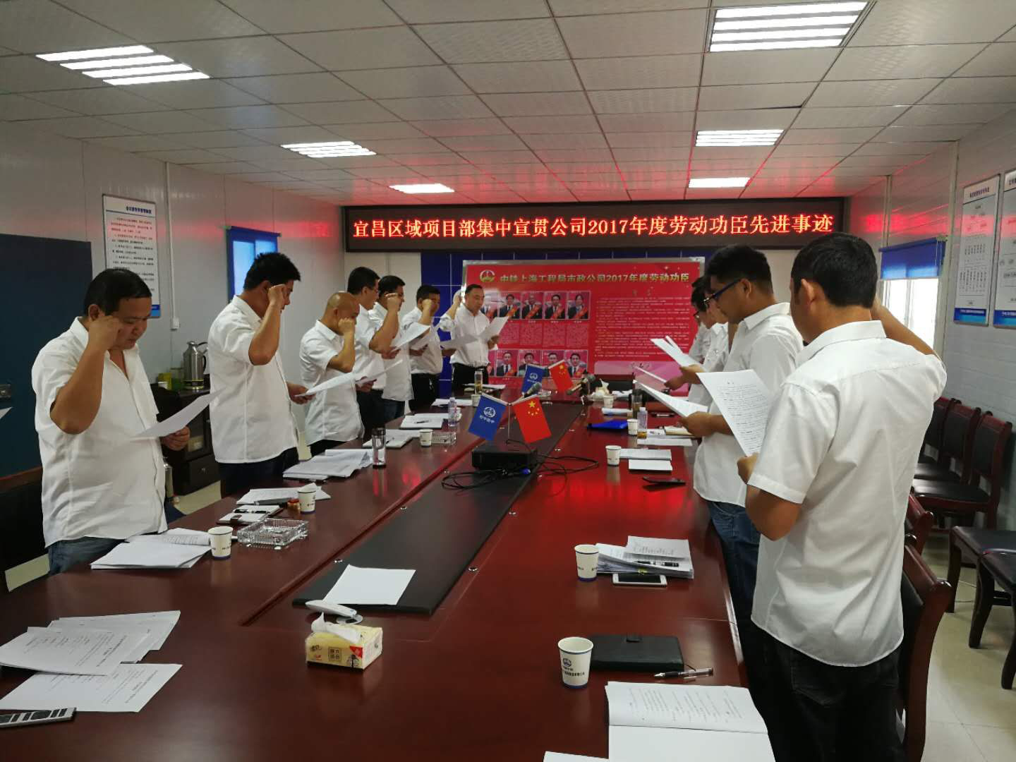 ☆4月19日,宜昌區(qū)域項目部組織干部職工宣貫公司2017年度“勞動功臣”先進(jìn)事跡。宣貫會上,首先由區(qū)域項目黨總支書記向大家介紹了公司2017年度“勞動功臣”的先進(jìn)模范事跡,督促各項目全體干部職工向“勞動功臣”學(xué)習(xí),弘揚敢于爭先、勇創(chuàng)一流的工作精神,營造人人學(xué)當(dāng)先進(jìn)、事事爭做楷模的良好氛圍。隨后,由桔鄉(xiāng)路項目經(jīng)理領(lǐng)誓,帶領(lǐng)大家莊嚴(yán)宣讀公司誓言。最后,全體與會人員依次在簽名板上簽名,表達(dá)自己向公司“勞動功臣”努力學(xué)習(xí)并付諸實踐的決心。(馮理欽)
