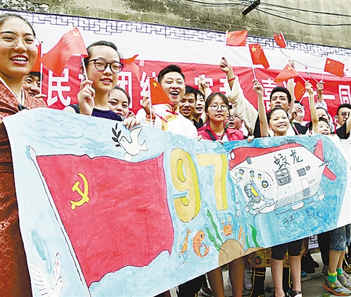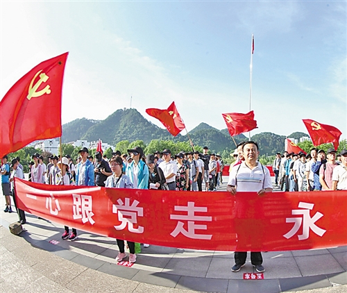 6月27日,安徽省歙縣舉辦“一心跟黨走 永遠在路上”活動迎接黨的生日。當日,200名縣直機關(guān)黨員和非公企業(yè)的黨員從縣城出發(fā),沿著革命先烈走過的足跡,到達溪頭鎮(zhèn)汪滿田村紅軍紀念碑?;顒又信e辦升國旗、唱國歌儀式,沿途宣傳環(huán)保、扶貧、文明創(chuàng)建等內(nèi)容。吳建平攝