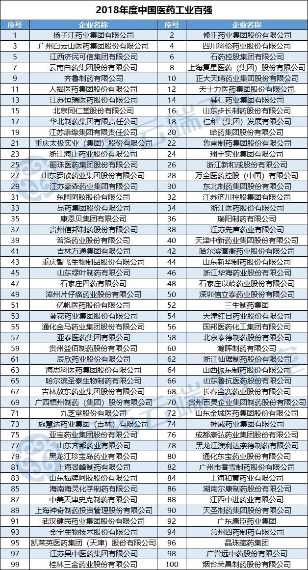 附:2018年度中國(guó)醫(yī)藥工業(yè)百?gòu)?qiáng)