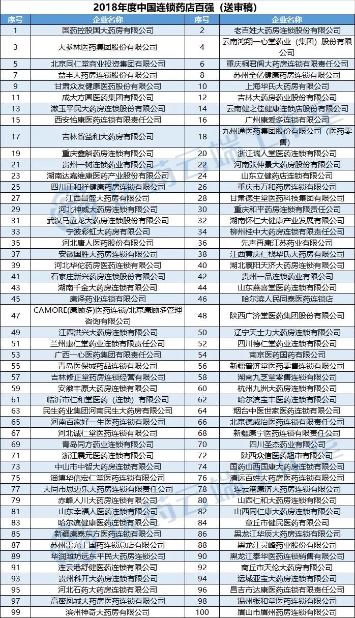 2018年度中國(guó)連鎖藥店百?gòu)?qiáng)